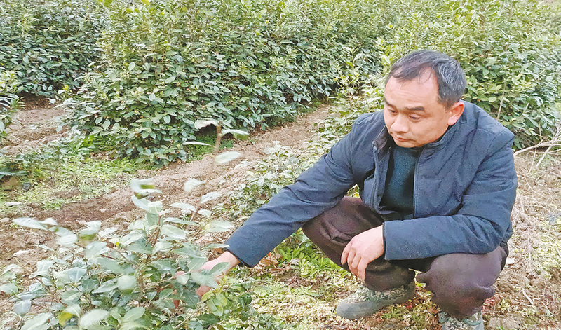 柯启林在茶山上查看茶叶长势。