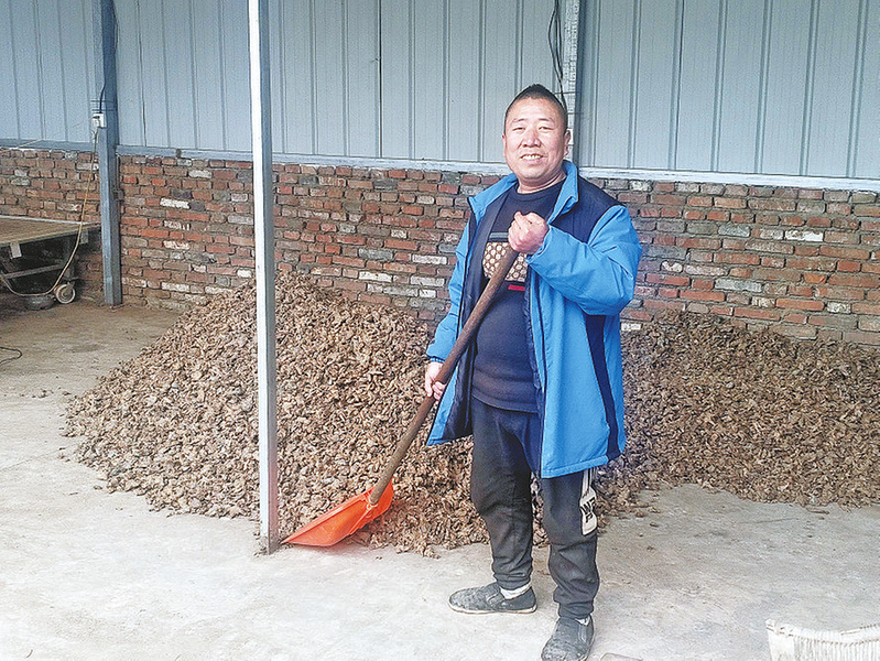 朱永志在厂房外翻晒猪苓。