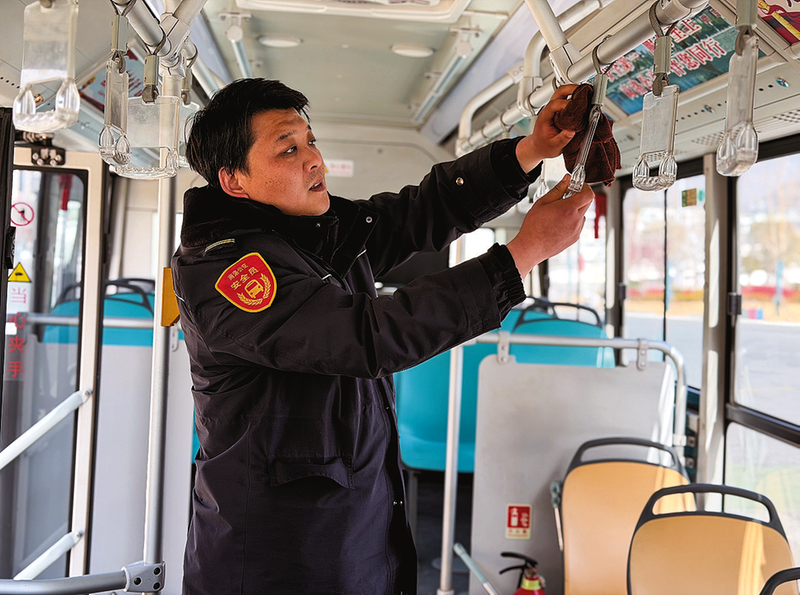 每一次收班前,在目送最后一名乘客下车后,陈佳玉才松开方向盘,神情慢慢放松下来,紧接着他将车内卫生打扫一遍,确保车辆内部干净整洁,让乘客坐得舒适。“我手里握着的方向盘,承载着一车人的平安,每一个乘客背后都有一个家庭。”陈佳玉真挚地说,在新的一年里,他会继续做好分内工作,服务好每一位乘客,守护乘客的平安路。