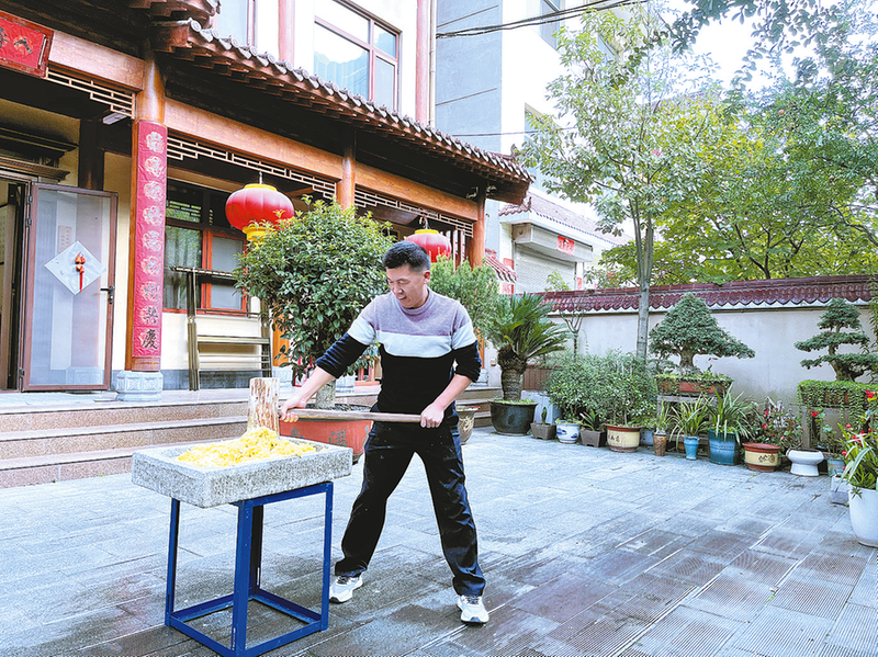 “过年最忙,每天得打够七八百份,胳膊酸到抬不起来,但老主顾们等着这口年味,歇不得。”邓承林抹了把汗,手中的木锤却未停歇。