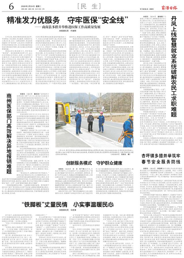 去年以来,商南县聚焦医保基金监管、专项整治、全民参保、经办服务、体制改革五大重点任务,打出一套靶向精准、务实高效的医保工作“组合拳”,以扎实有力举措织密织牢医疗保障安全网,为全县群众提供更加坚实可靠的医疗保障,助力县域民生事业高质量发展。
