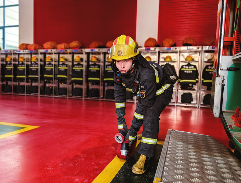 这已是李怡科在队里度过的第二个春节,假期没有固定作息。每天从检查装备开始,他和队友总要互相提醒:“细节不能马虎,关键时刻靠得住。”“假期警情往往更复杂,我们必须更快更稳。”李怡科边整理水带边说。