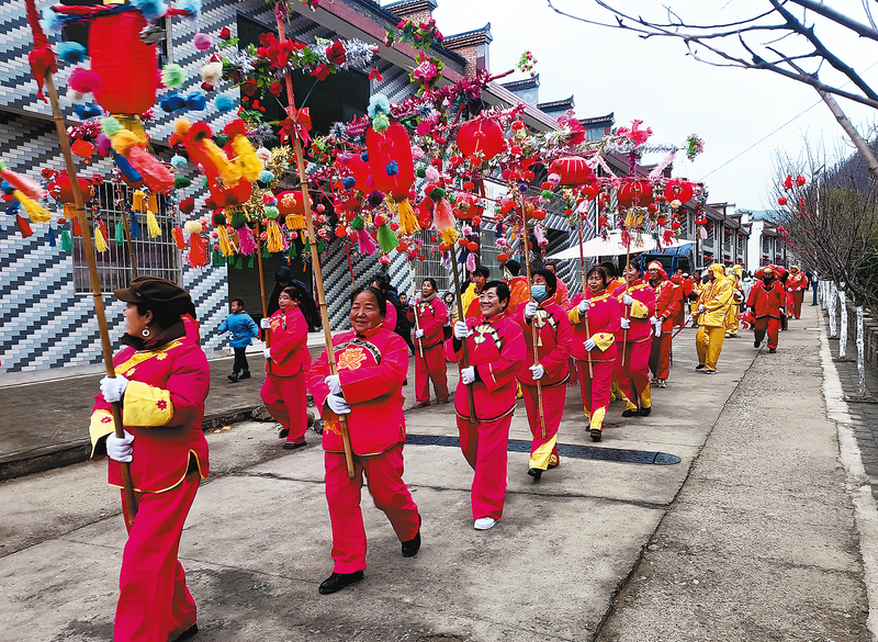 二月二十八日,农历正月十二,洛南县麻坪镇云蒙山村群众正在进行闹花灯表演。(本报通讯员 毕波波 摄)