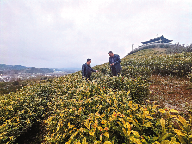 眼下正值春茶萌芽的关键时期,也是茶园气象服务需求最迫切的阶段。2月26日,商南县气象局组织工作人员前往富水镇茶海公园,开展春节后首轮茶园气象服务实地调研,通过踏田查看了解茶树萌芽长势,为后续服务春茶生产掌握一手情况。 (本报通讯员 程 龙 摄)