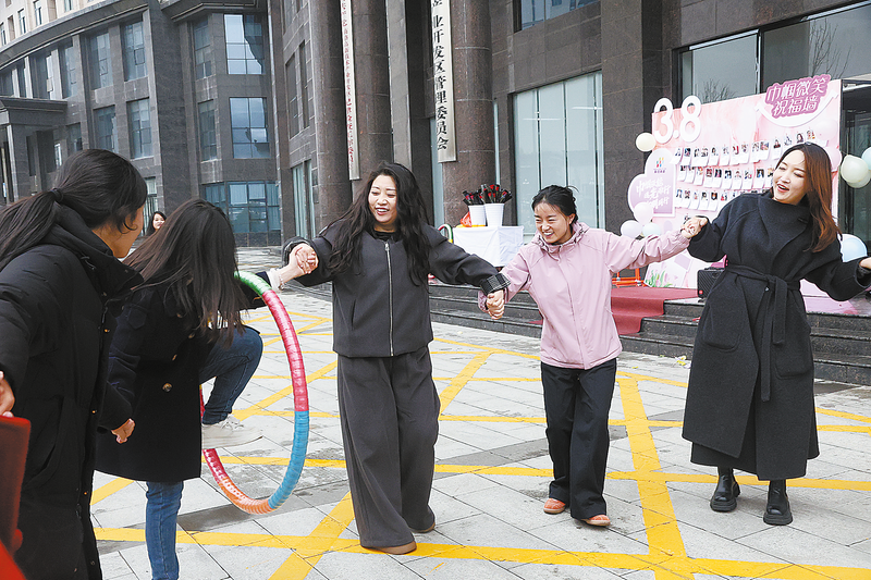 3月6日,商洛高新区妇联举办“三八”妇女节趣味运动会,紧扣“巾帼强能・逐光而行・与文明同行”主题,设置笑脸打卡、团队竞技等环节。活动以运动强能、以欢笑聚心、以文明铸魂,旨在展现巾帼芳华、凝聚团队力量。 (本报记者 耿 锟 摄)