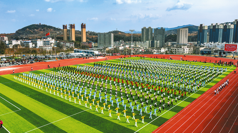 3月5日,洛南县“激扬奋进志 建功新时代”工间操比赛在县体育运动中心举行。来自县直各相关单位的19支代表队、1400余名干部职工齐聚赛场,以整齐划一的动作、昂扬向上的风貌,展现新时代洛南干部职工团结奋进、拼搏进取的精神面貌。 (本报通讯员 吴书怀 摄)
