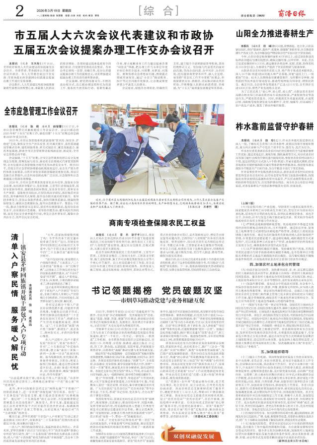 本报讯 (通讯员 田 峰)春回大地,农事渐起。连日来,山阳县紧扣农时,坚持“稳面积、提单产、优服务、强保障”多措并举,全力推进春耕生产各项工作,为全年粮食稳产增收和乡村产业振兴打下坚实基础。