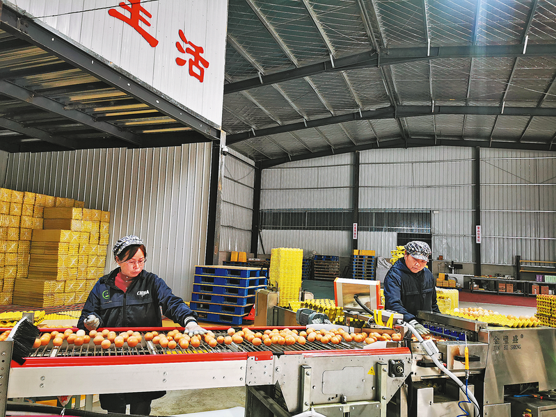 日前,在商南县南凰凤禽智慧蛋鸡产业园蛋品分拣车间,一枚枚鸡蛋经过紫外线杀菌、裂纹检测、称重分级等工序处理后,实现快速分拣、精准分级。据了解,该产业园是一座集智能化养殖、生态循环和联农带农功能于一体的综合性示范基地,引入自动化饲喂、环境控制、粪污处理等智能化系统,实现主要生产环节的精准管理,综合效益是传统养殖模式的8倍。 (本报记者 肖 莲 摄)