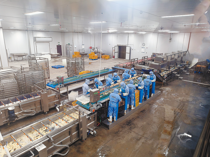 近日,走进位于洛南县西北核桃物流园的陕西天榛食品科技有限公司车间,工人正在加工苹果干。据了解,该公司加工的坚果、果干等产品销往了全国各地,年销售额可达4000万元,带动周边群众100多人就近就业。 (本报记者 李小龙 摄)