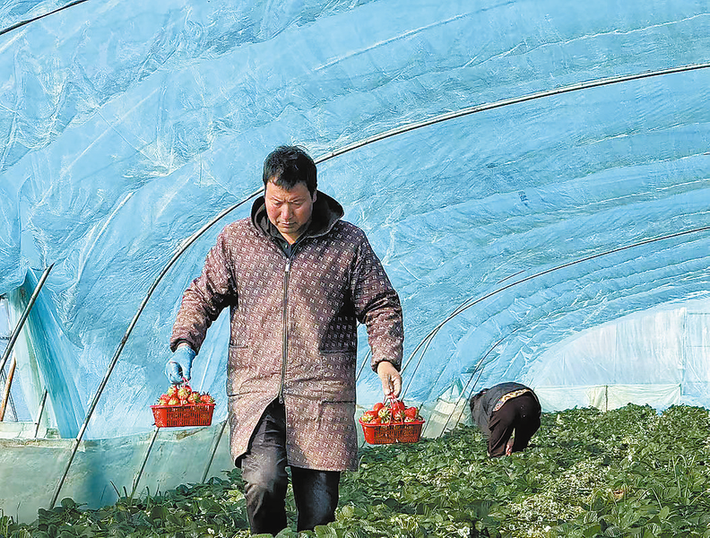 近期,商州区夜村镇天天鲜草莓种植基地的13亩草莓进入盛果期,吸引不少市民前来采摘购买。近年来,商州区以特色种植激活乡村经济,实现农业增效、农民增收。 (本报记者 谢 非 摄)