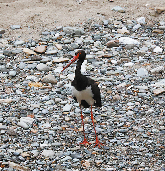 ▷2026年3月18日于镇安县乾佑河回龙镇河段拍摄到的黑鹳。 本报通讯员 石强 张博